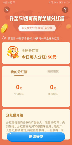 猫咪小屋(原生财喵)是阳光养猪场公司新推出的合成赚钱小游戏,登陆填写邀请码:126867789,送新手红包,首次0.3元起提现,后续30元起提现。
